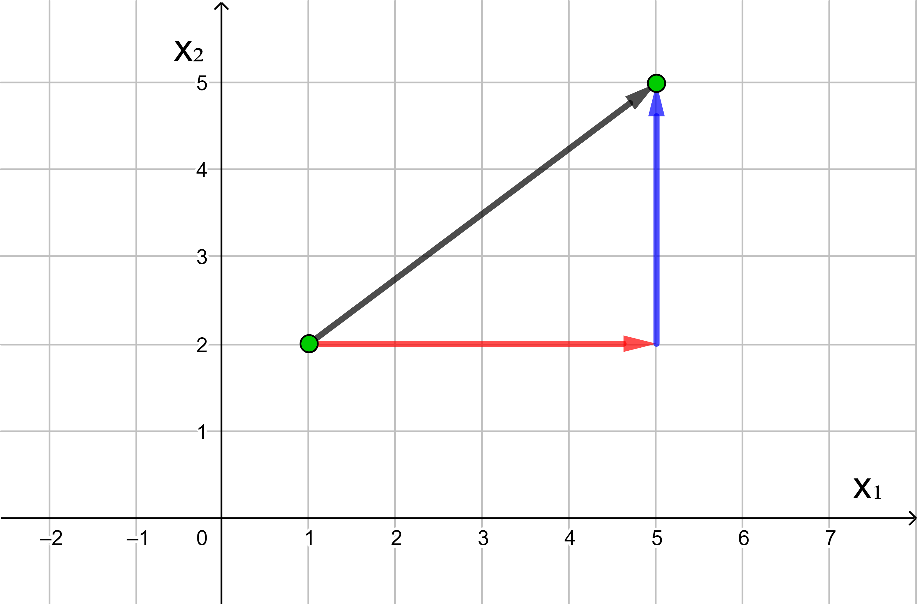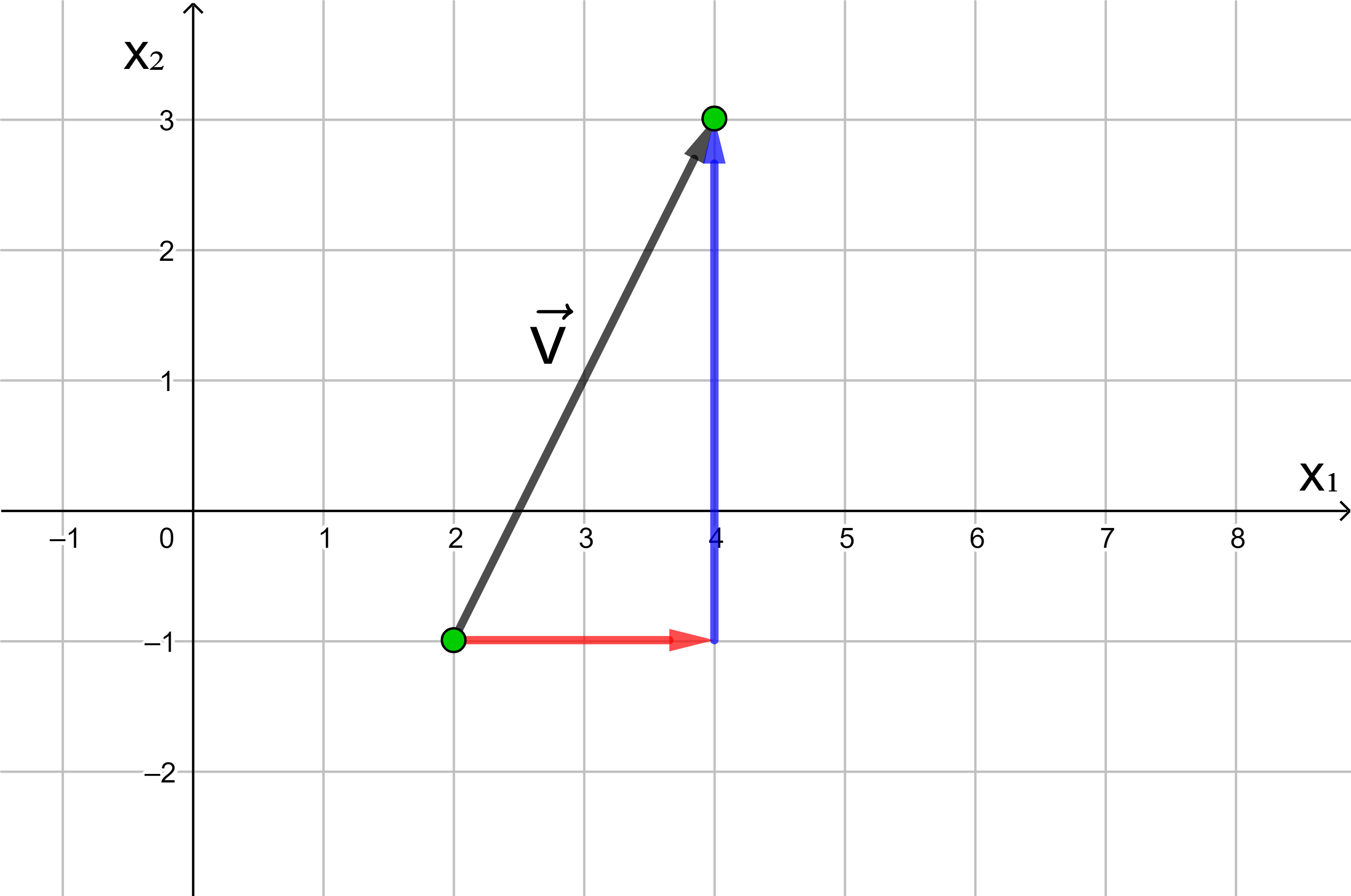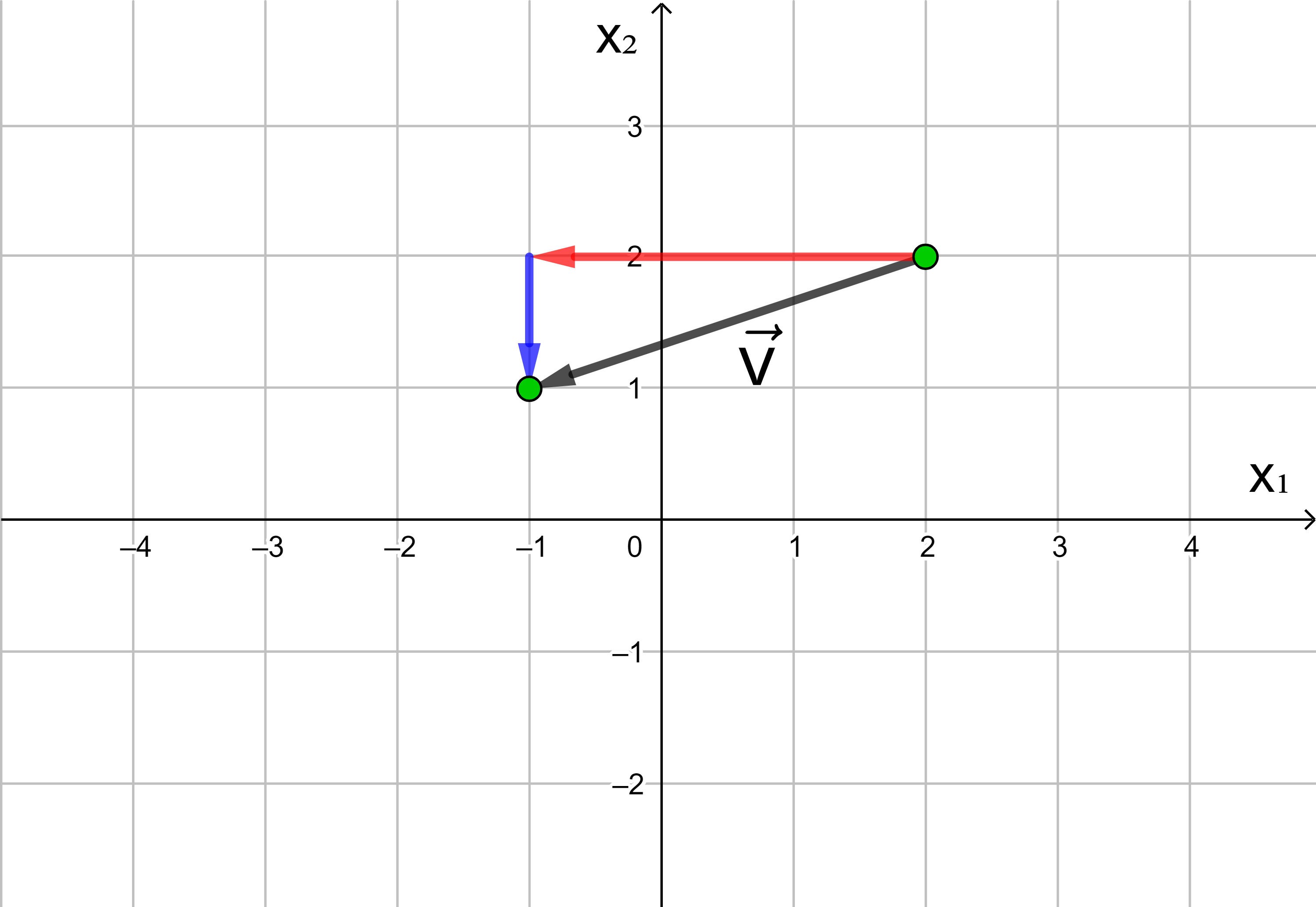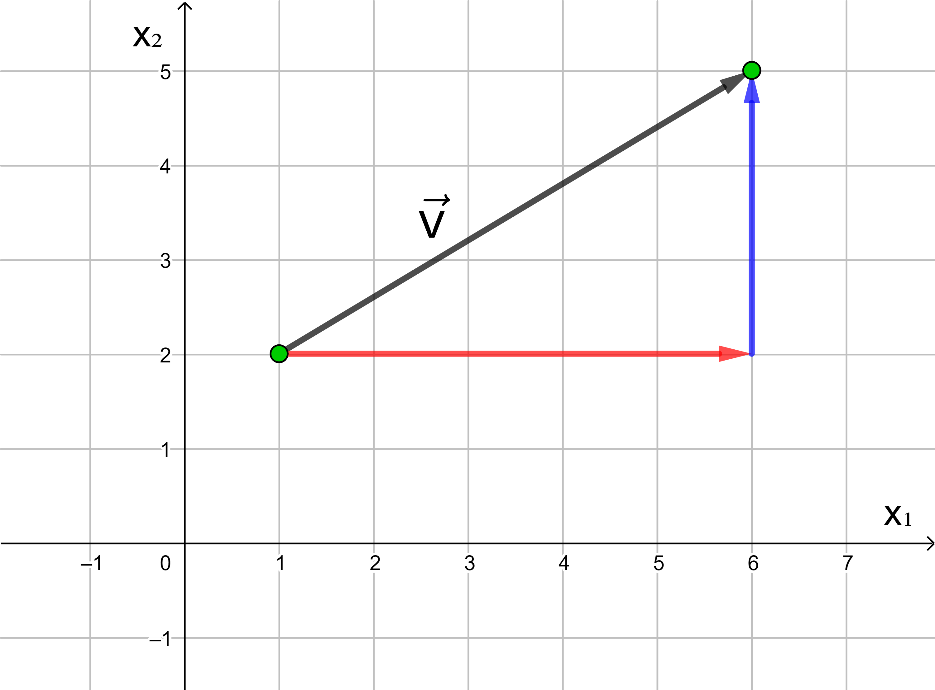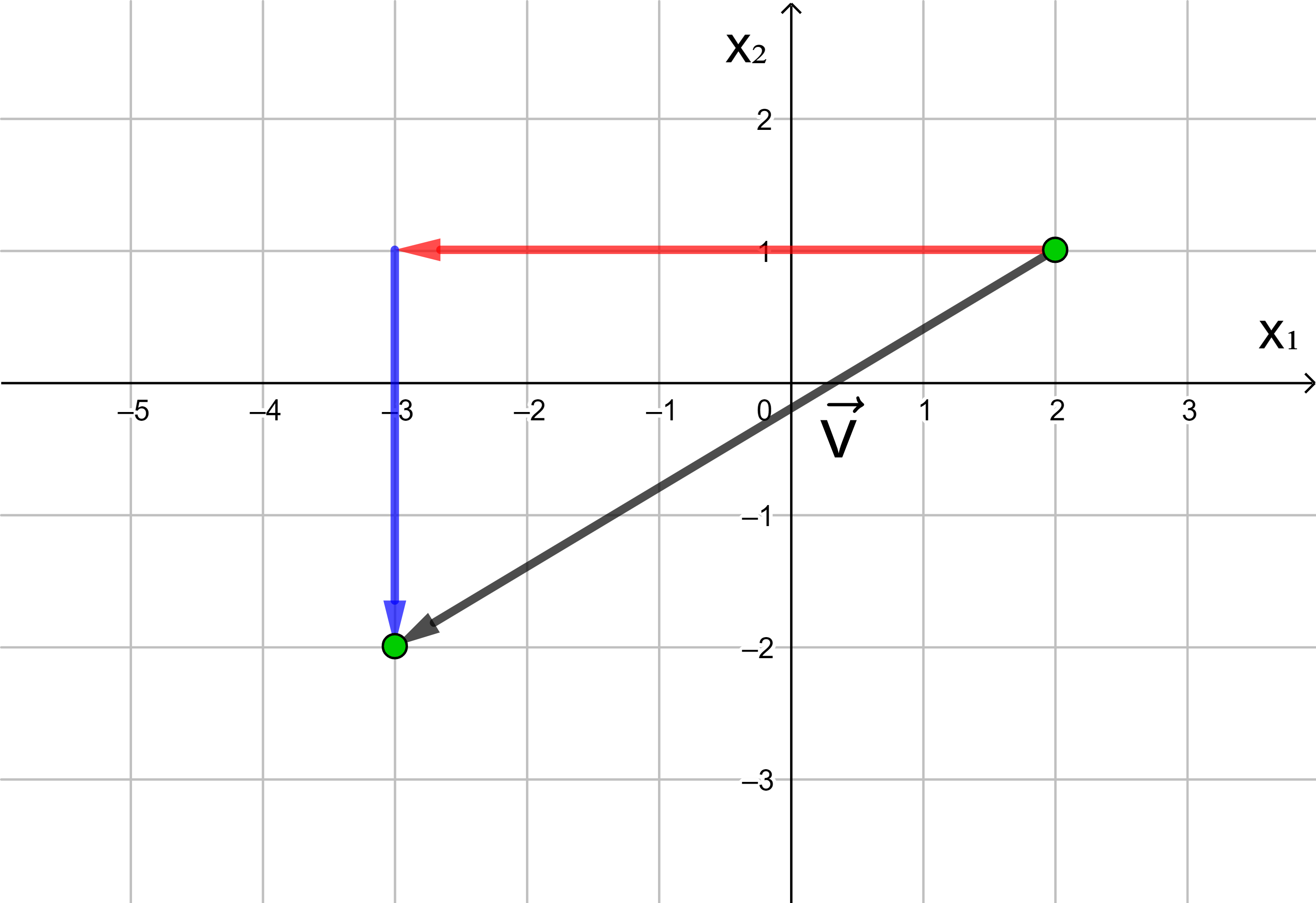 Jede Verschiebung eines Punktes in der Ebene kann dargestellt werden als Hintereinanderausführung einer Verschiebung in Richtung der x1-Achse und einer Verschiebung in Richtung der x2-Achse.