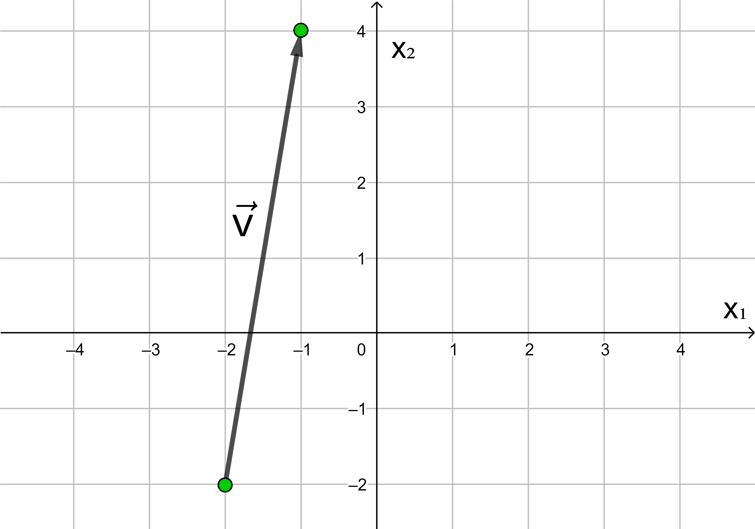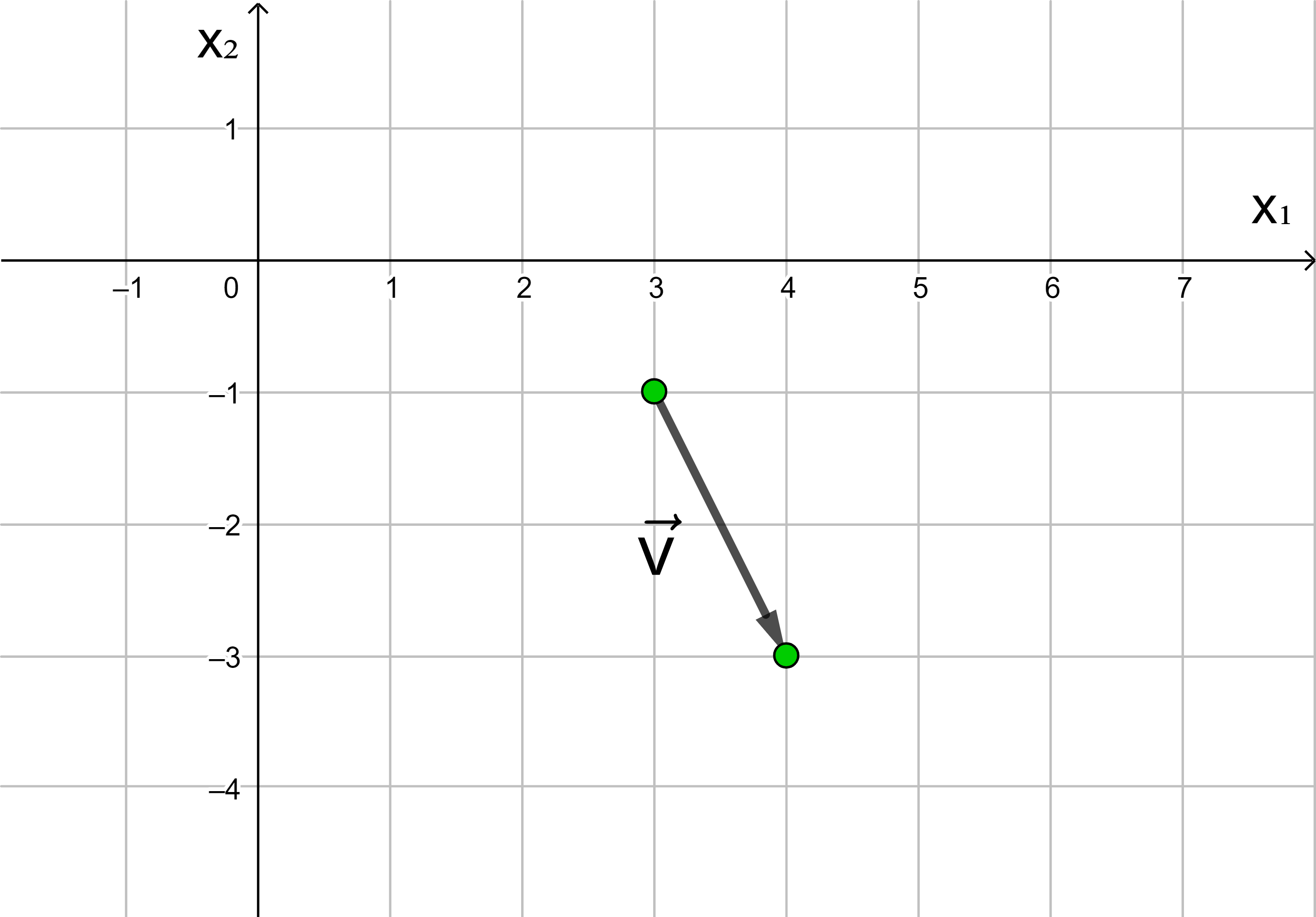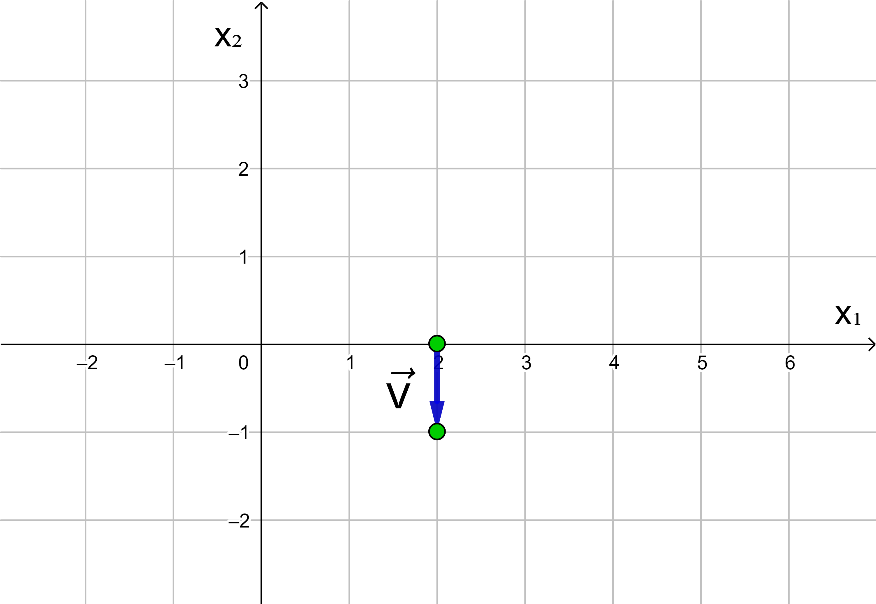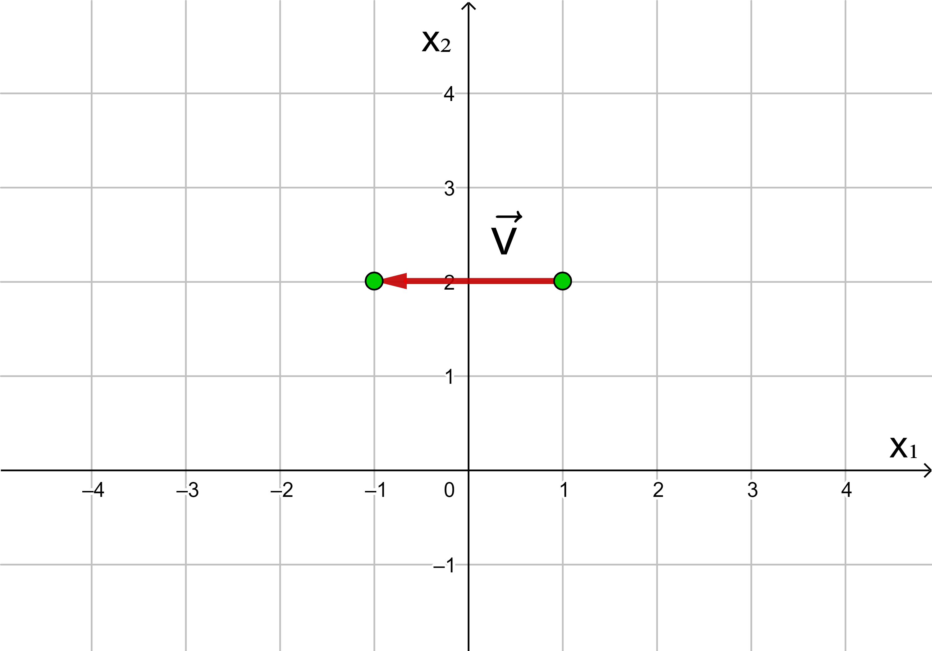 Wird ein Punkt in die negative Richtung der x1- bzw. x2-Achse verschoben, hat die x1- bzw. x2-Koordinate des Vektors ein negatives Vorzeichen.