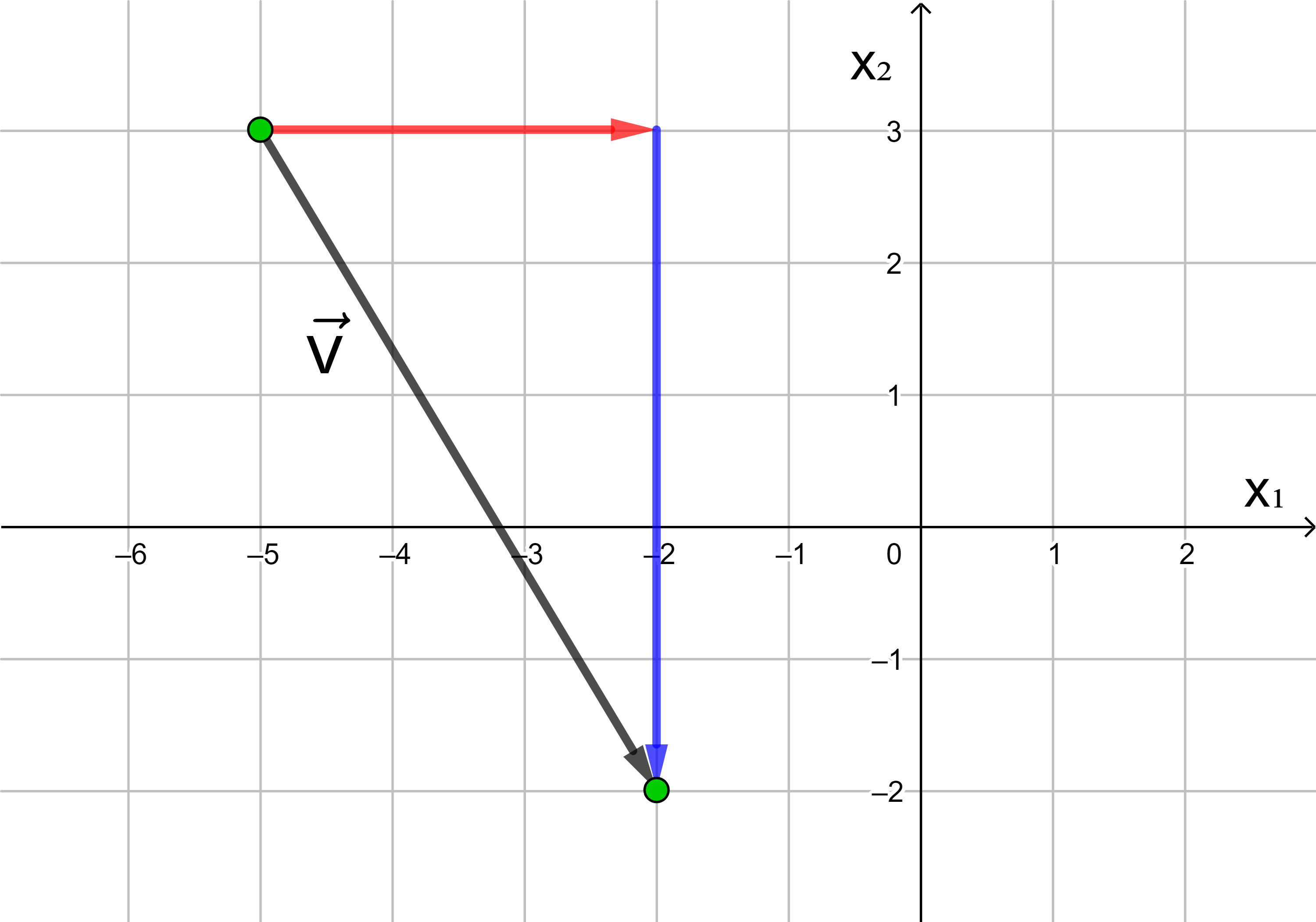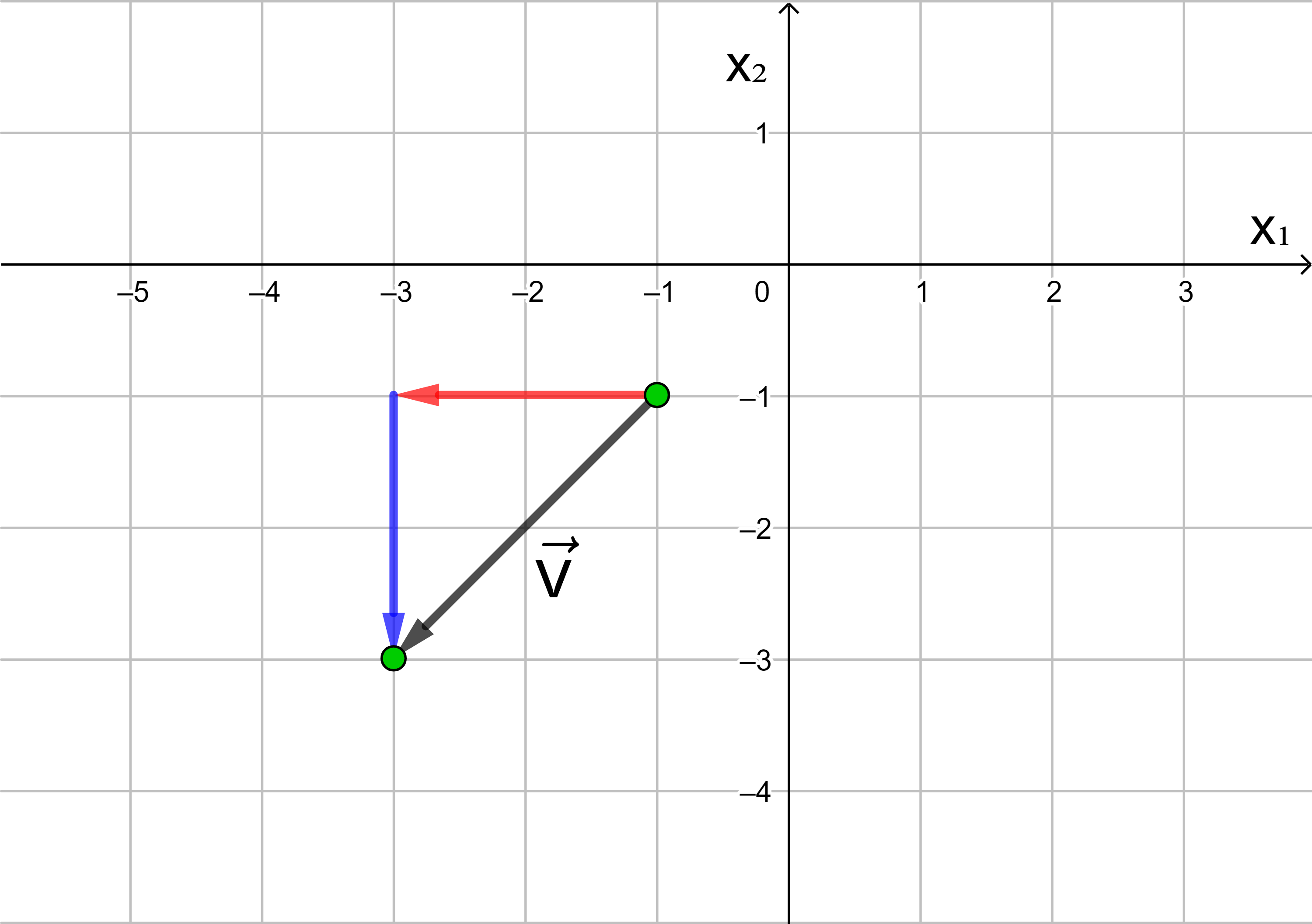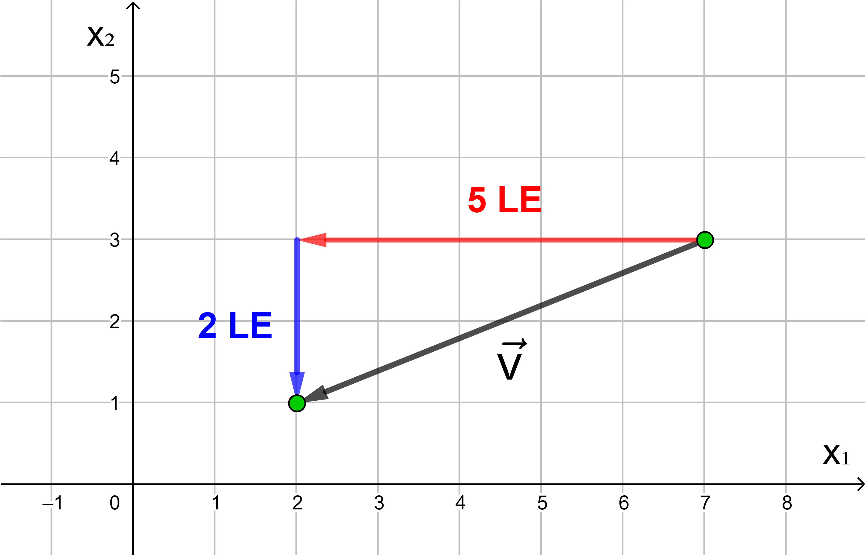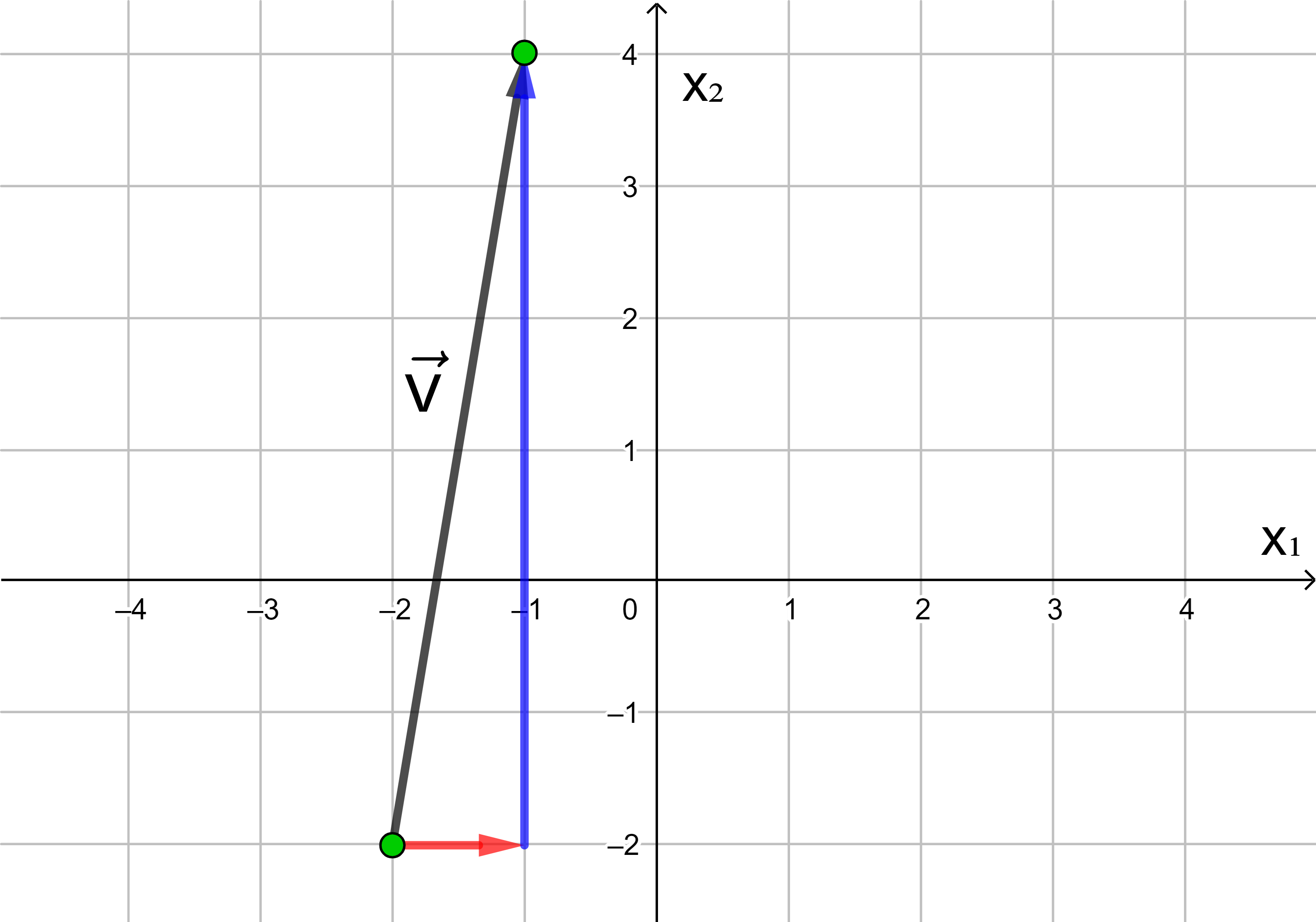 Wird ein Punkt in die negative Richtung der x1- bzw. x2-Achse verschoben, hat die x1- bzw. x2-Koordinate des Vektors ein negatives Vorzeichen.
