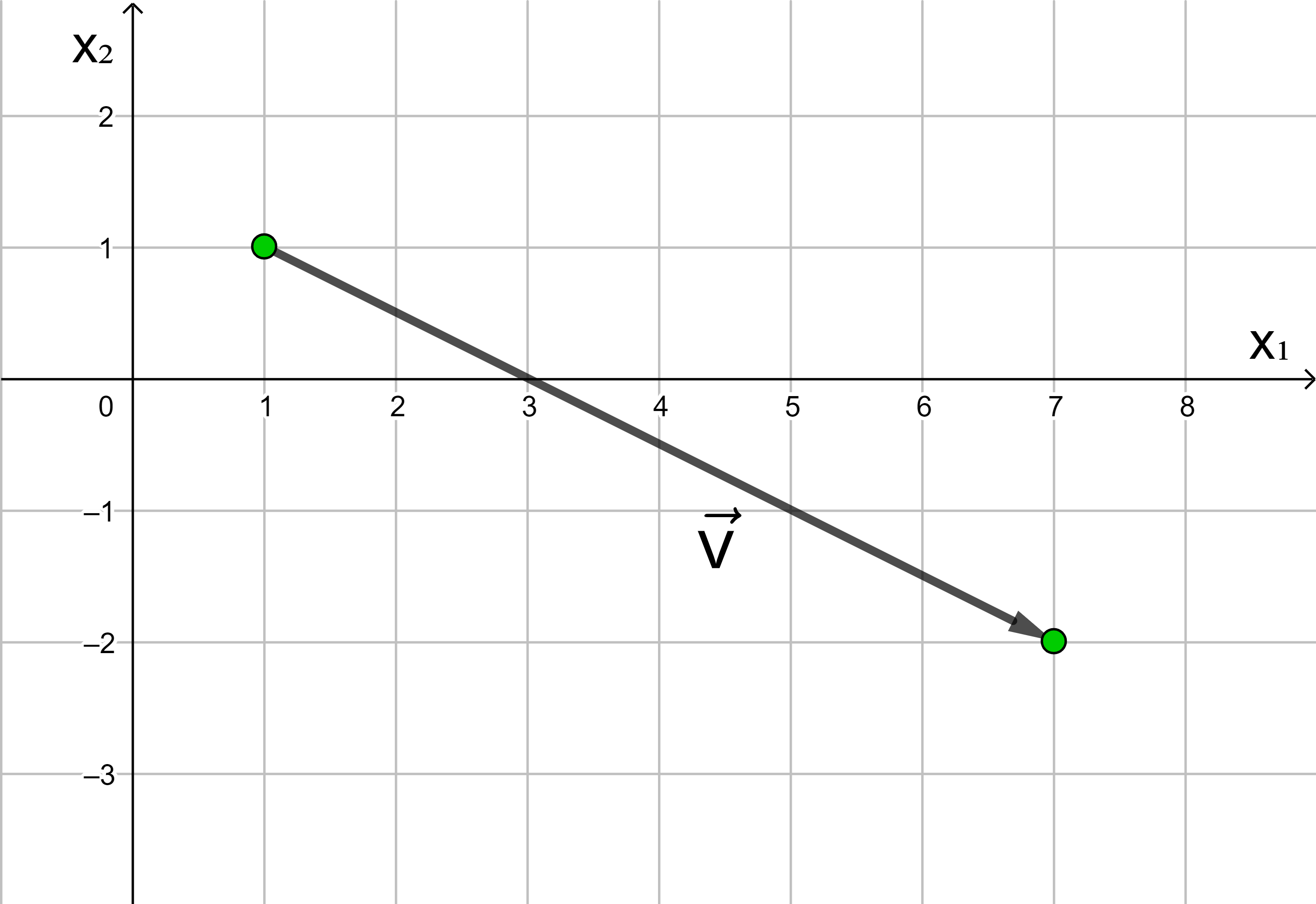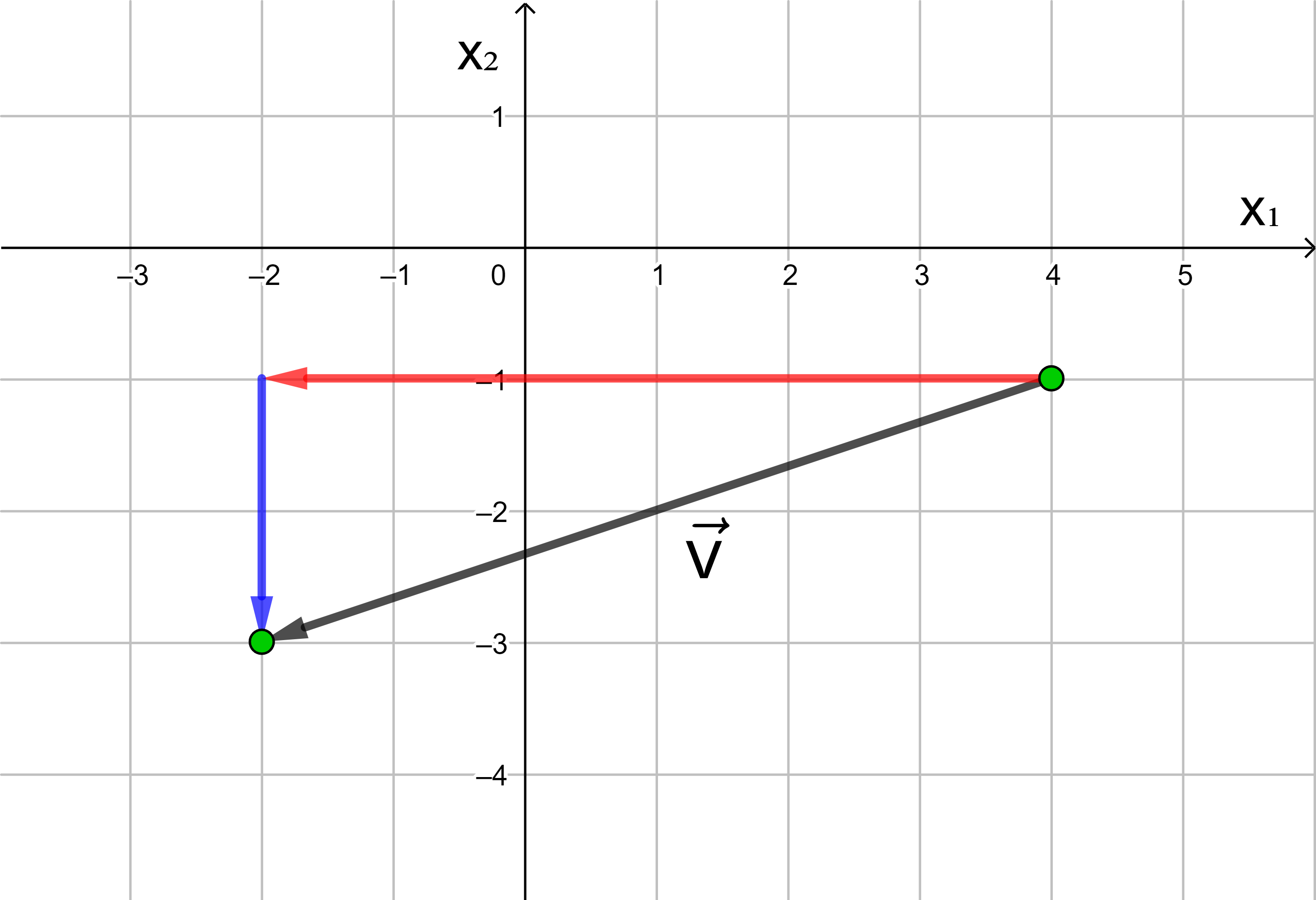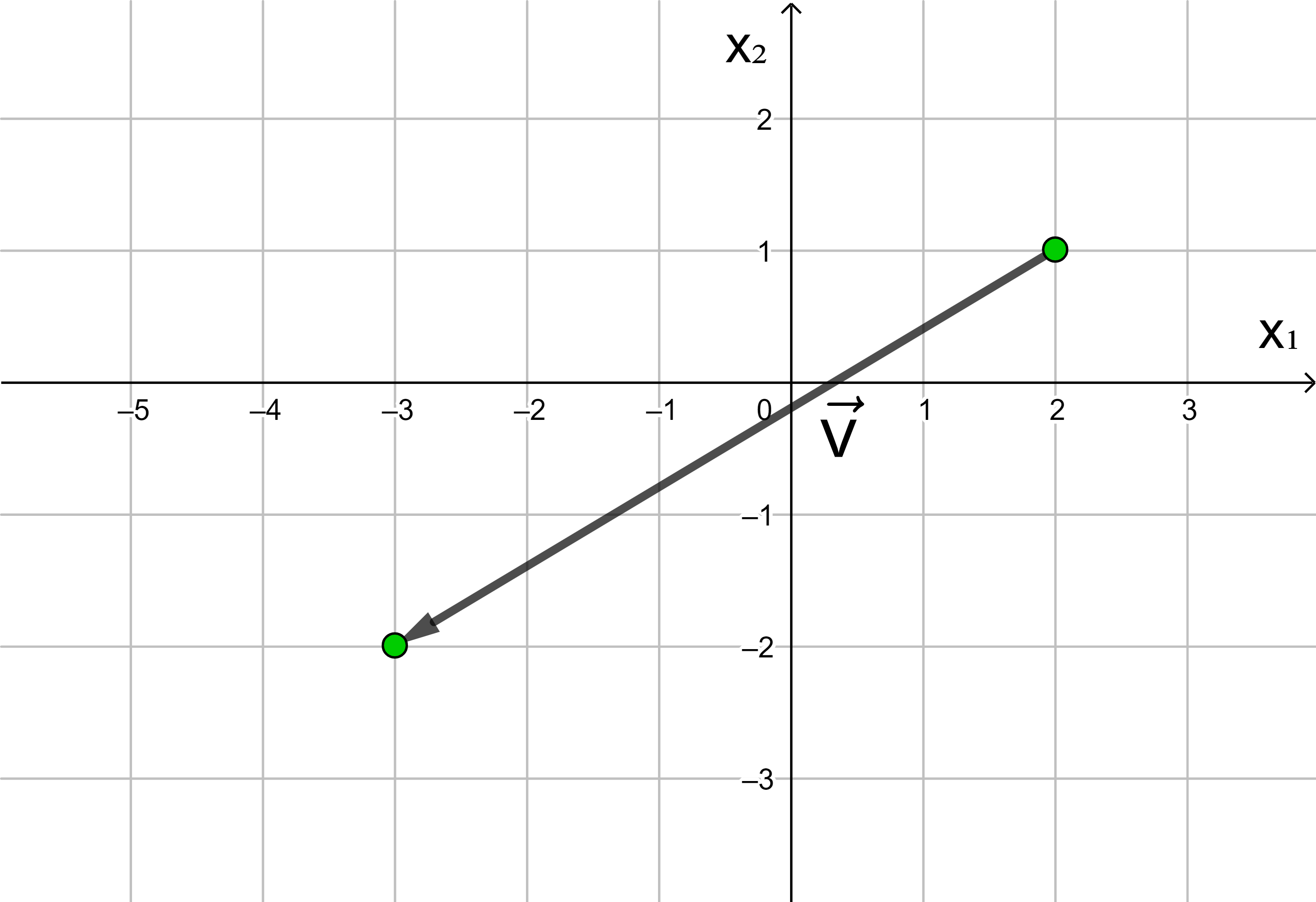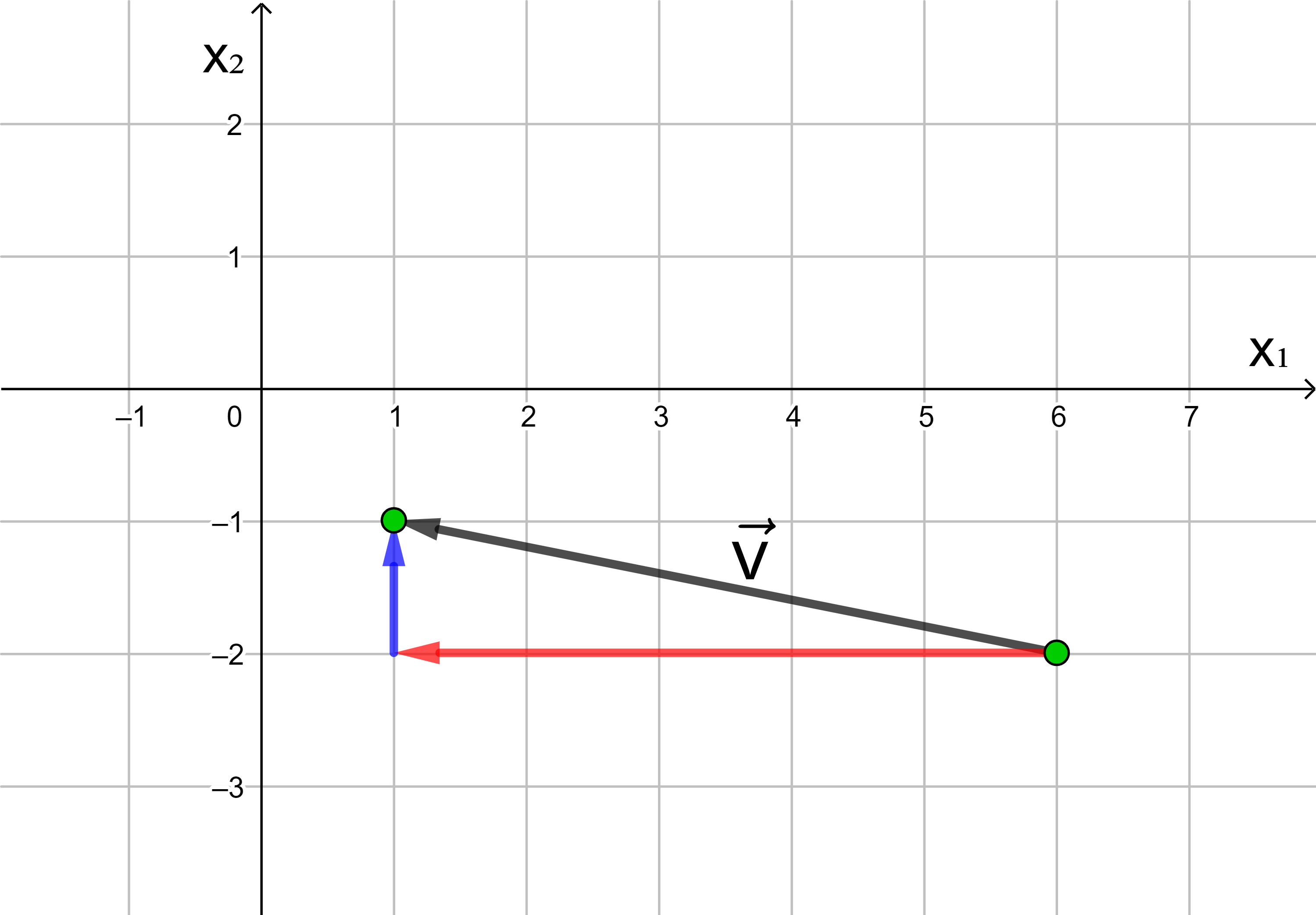 Wird ein Punkt in die negative Richtung der x1- bzw. x2-Achse verschoben, hat die x1- bzw. x2-Koordinate des Vektors ein negatives Vorzeichen.