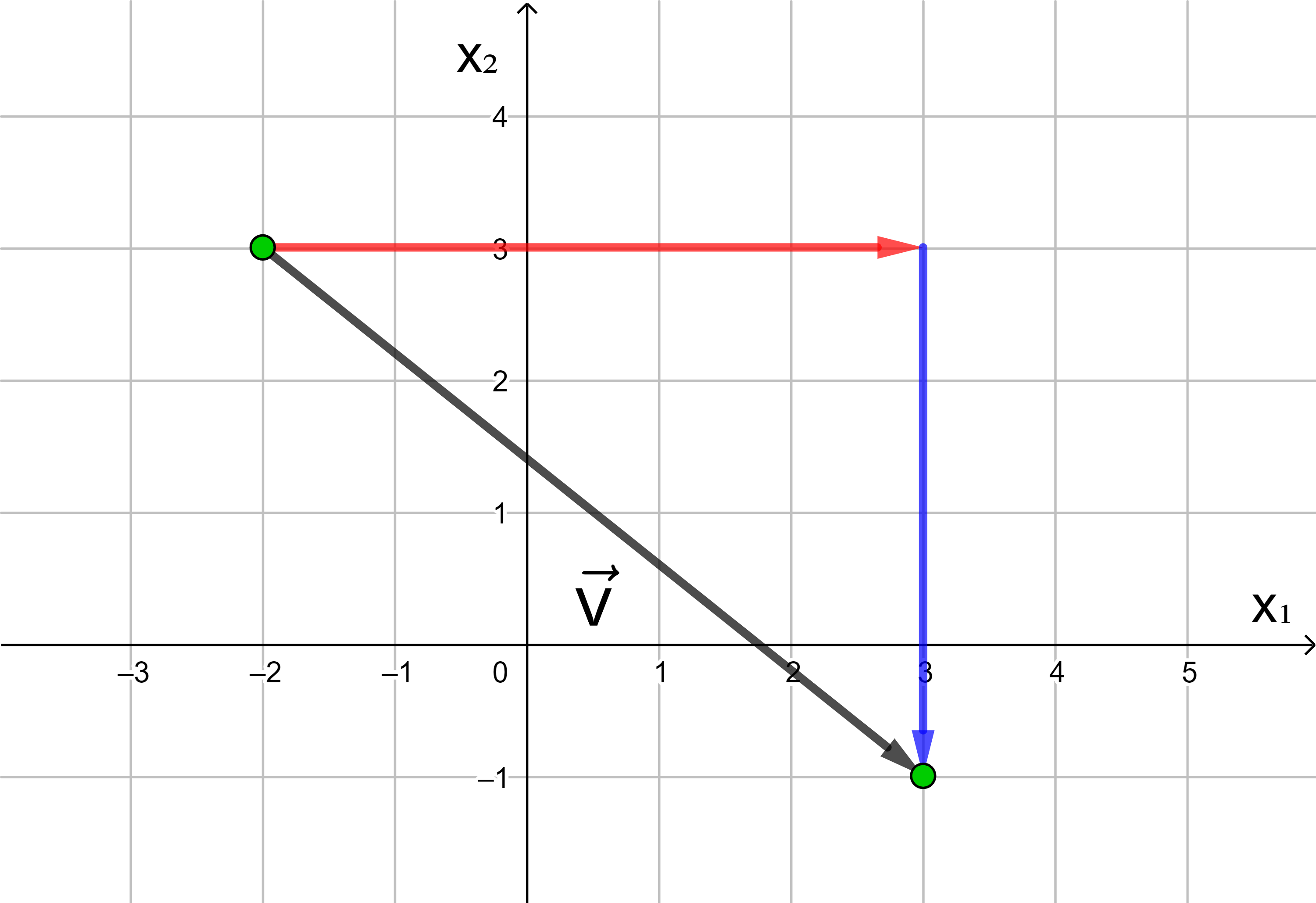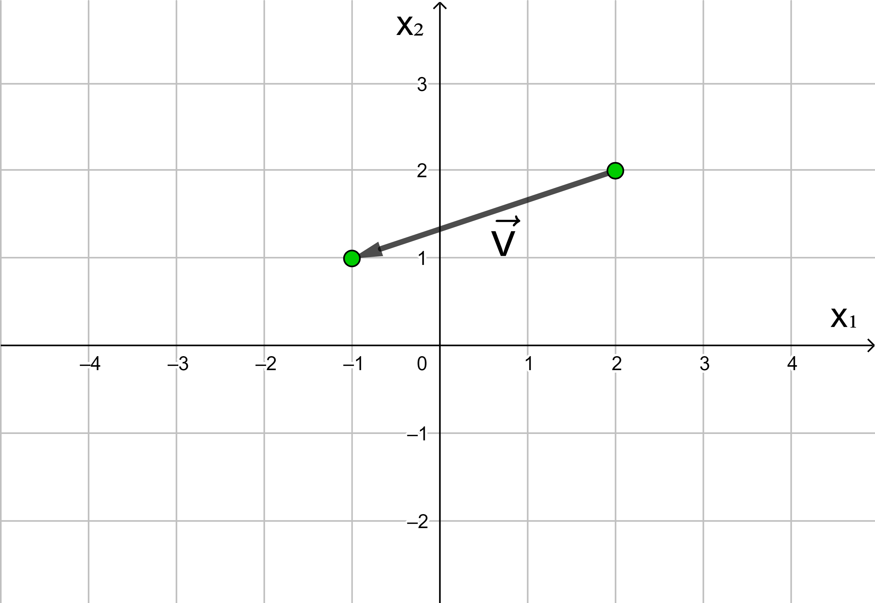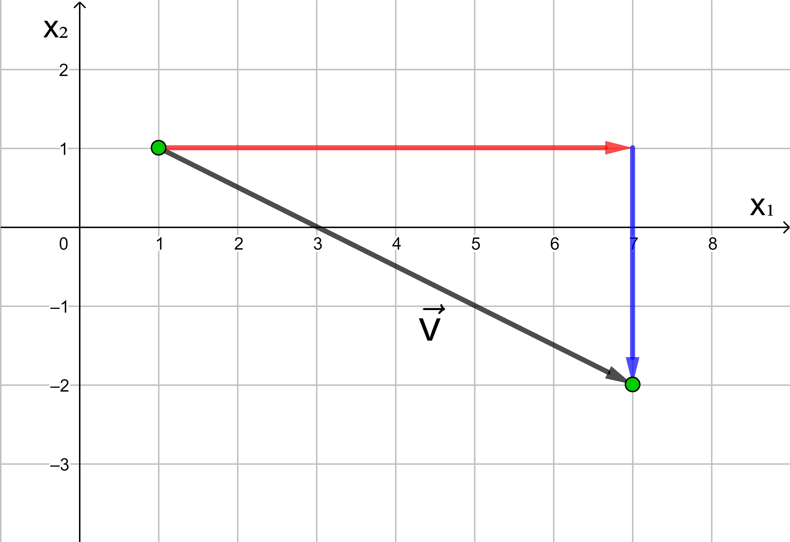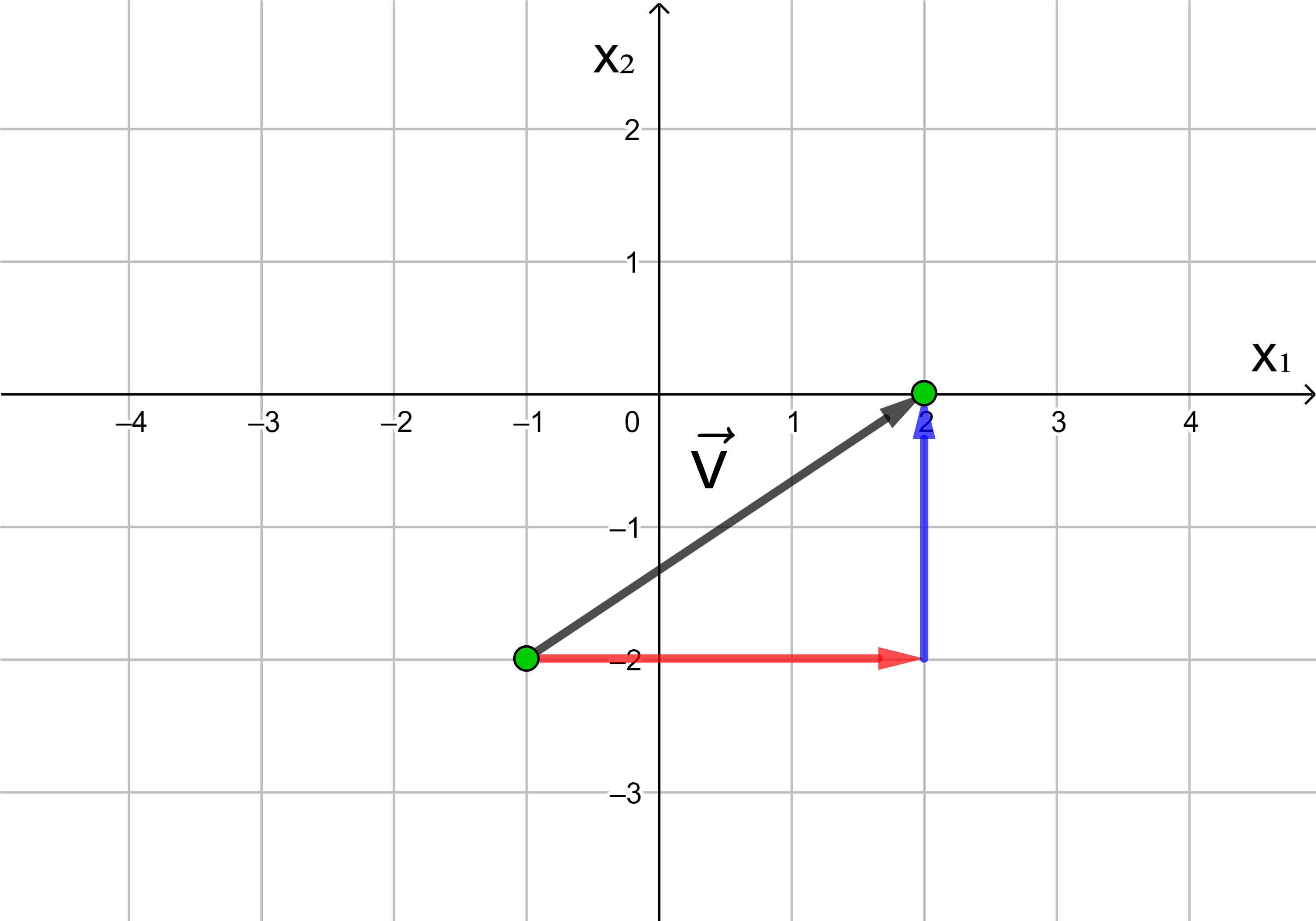 Wird ein Punkt in die negative Richtung der x1- bzw. x2-Achse verschoben, hat die x1- bzw. x2-Koordinate des Vektors ein negatives Vorzeichen.
