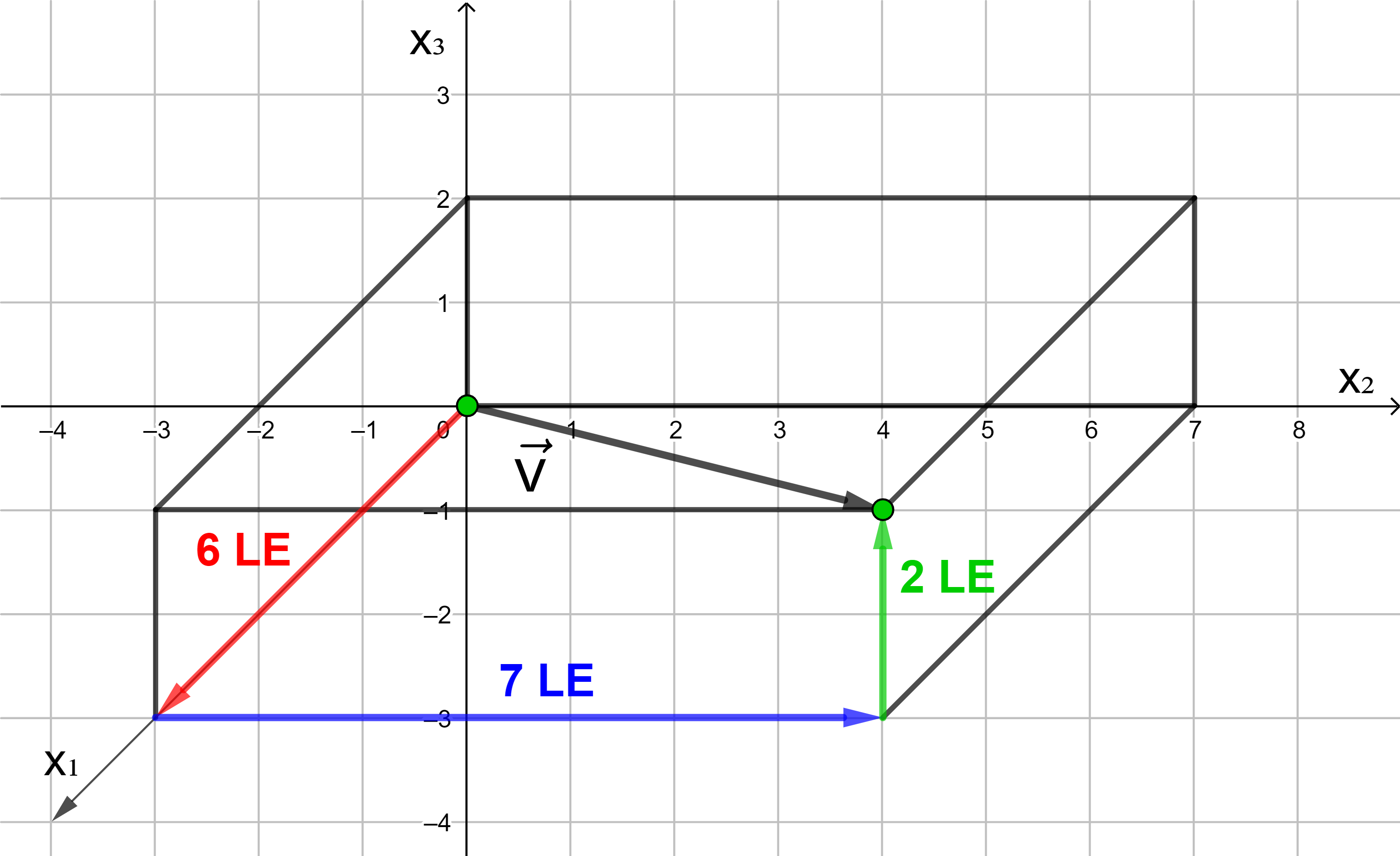 Auch Vektoren im Raum kann man Koordinaten zuweisen. Diese kann man aus einer perspektivischen Darstellung des Vektors ablesen, wenn der Vektor auf einer Diagonalen eines Koordinatenquaders liegt. Die Kanten des Quaders verlaufen parallel zu den Koordinatenachsen.