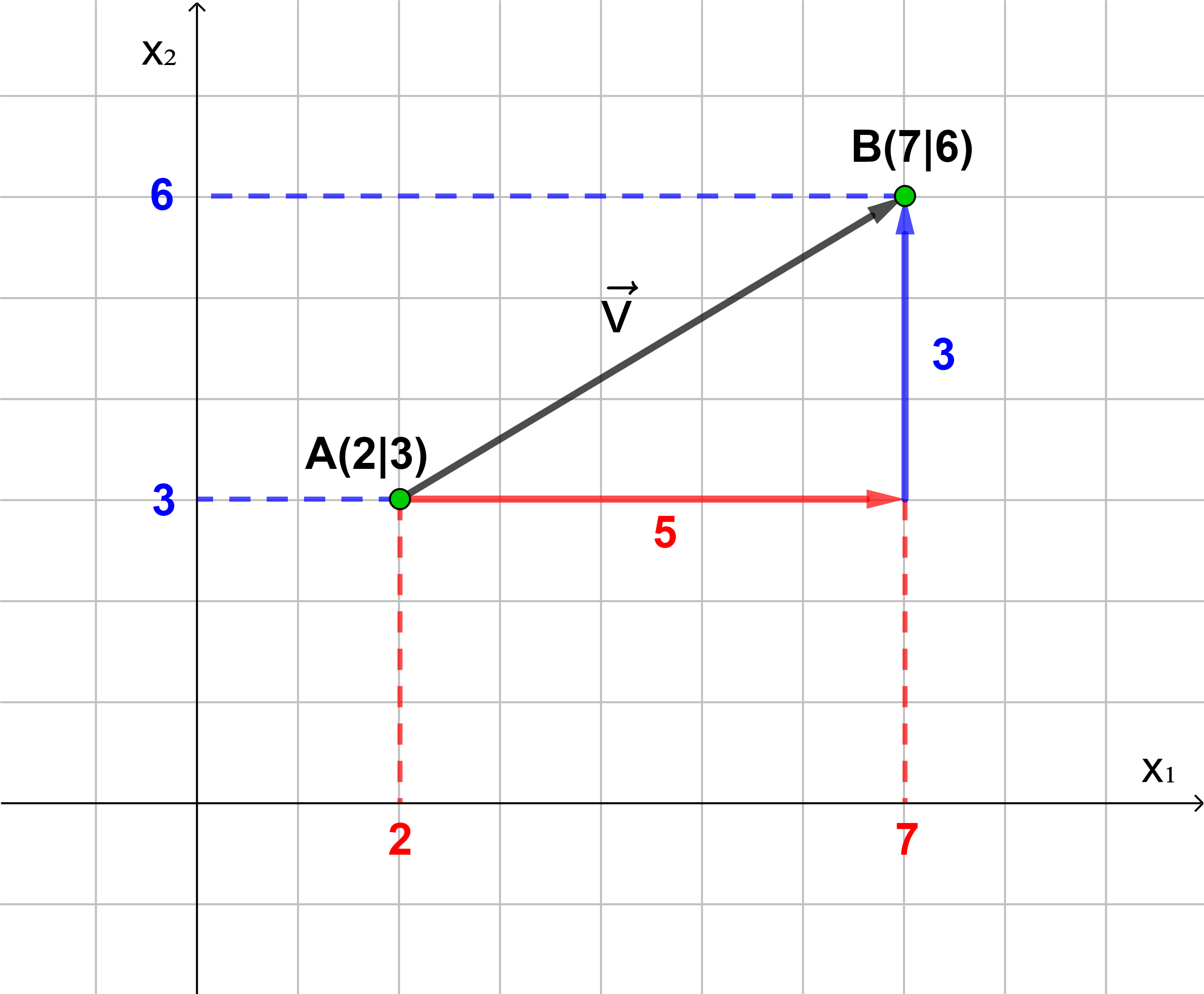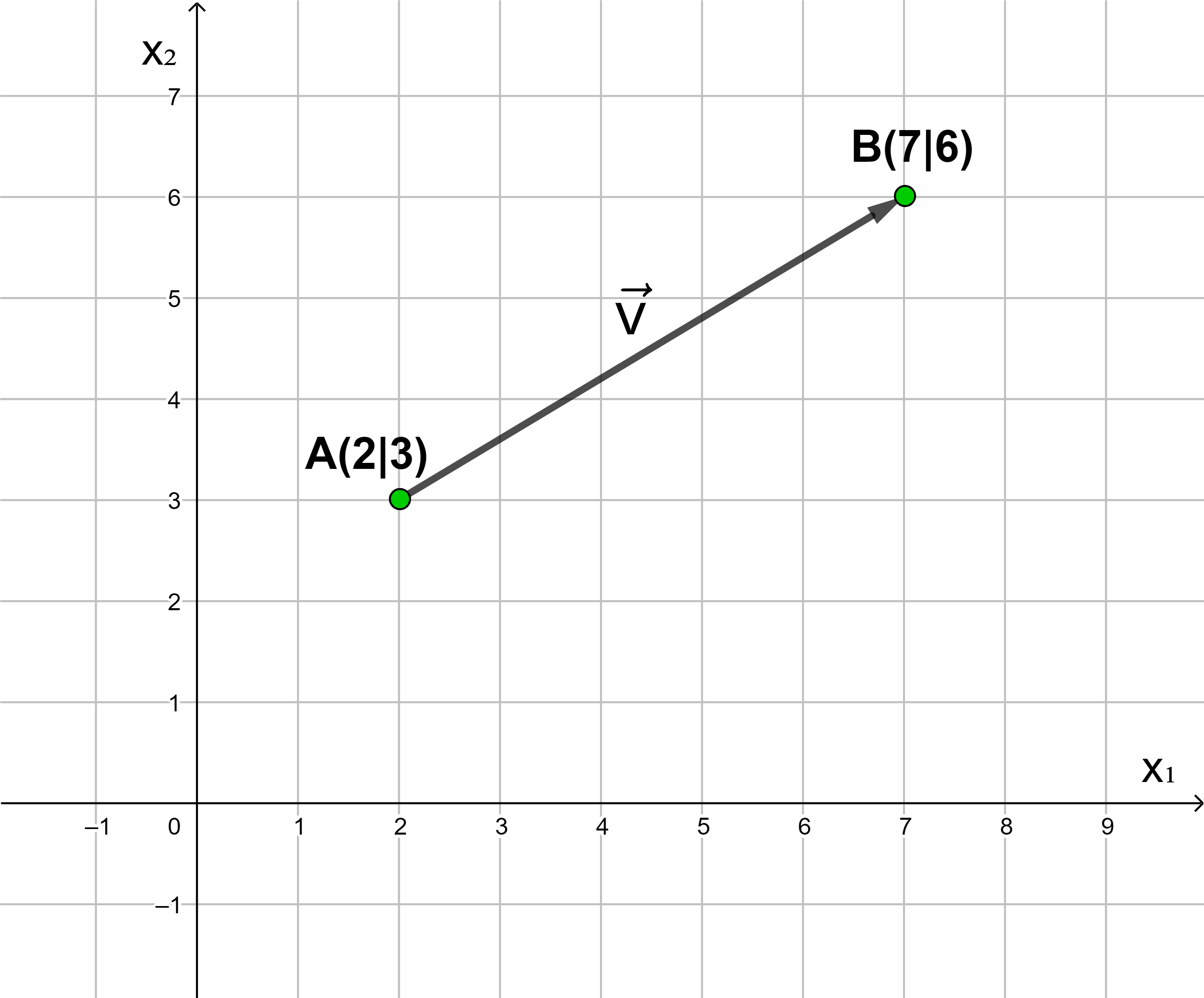 Der Verbindungsvektor der Punkte A(a1|a2) und B(b1|b2) in der Ebene hat die Koordinaten:
