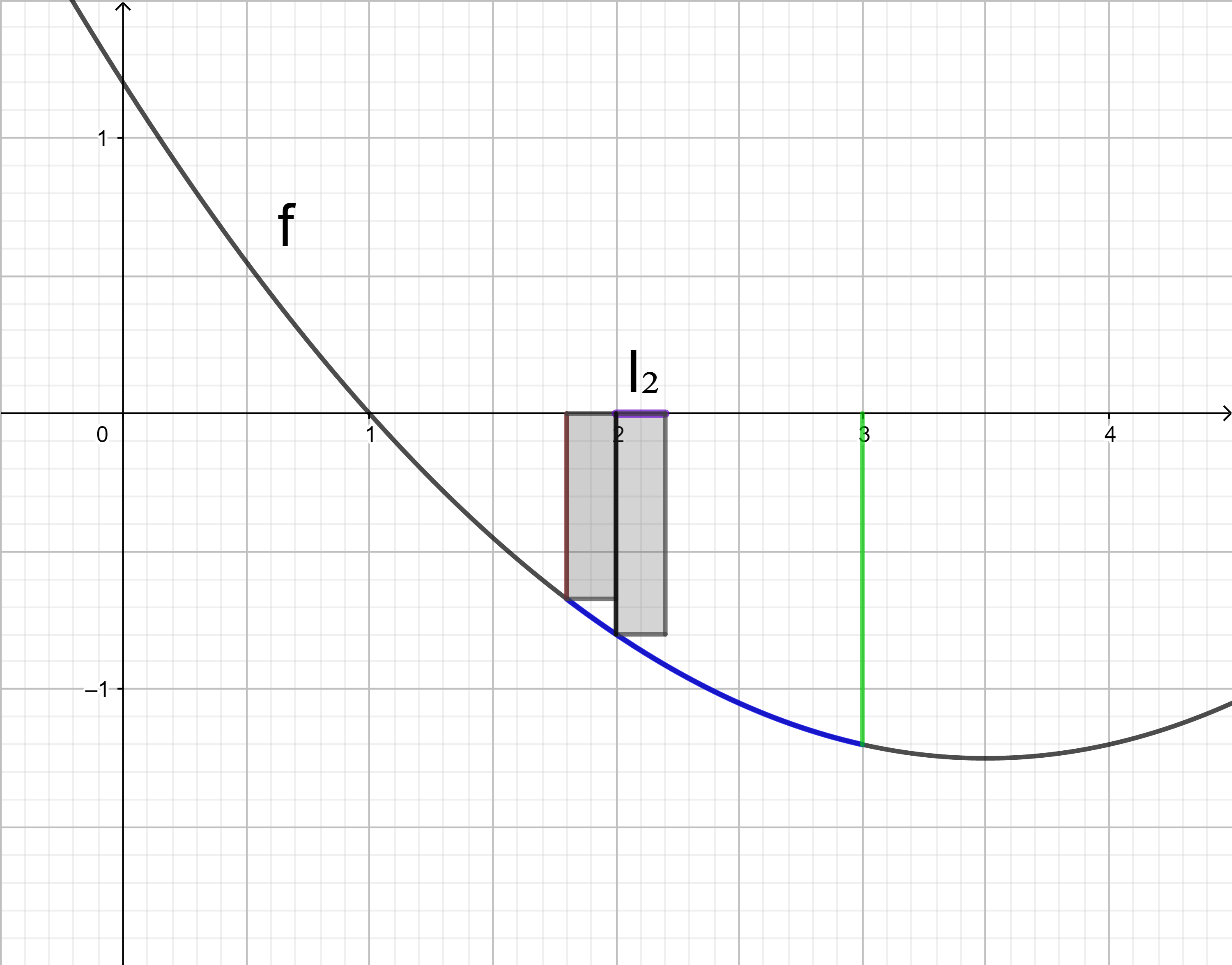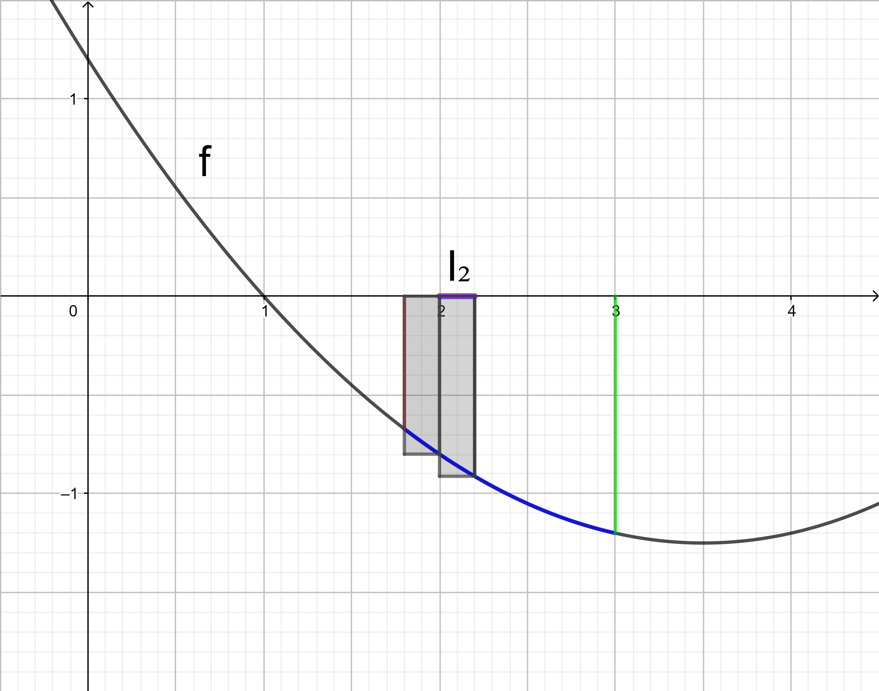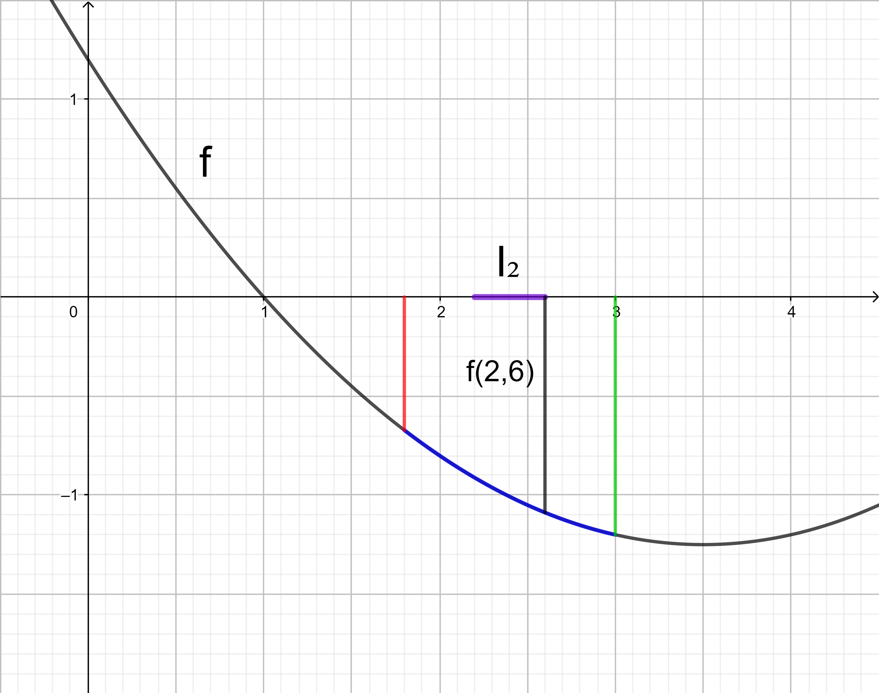 Das Rechteck im Intervall I2 hat den orientierten Flächeninhalt 0,4 ⋅ f(2,6).