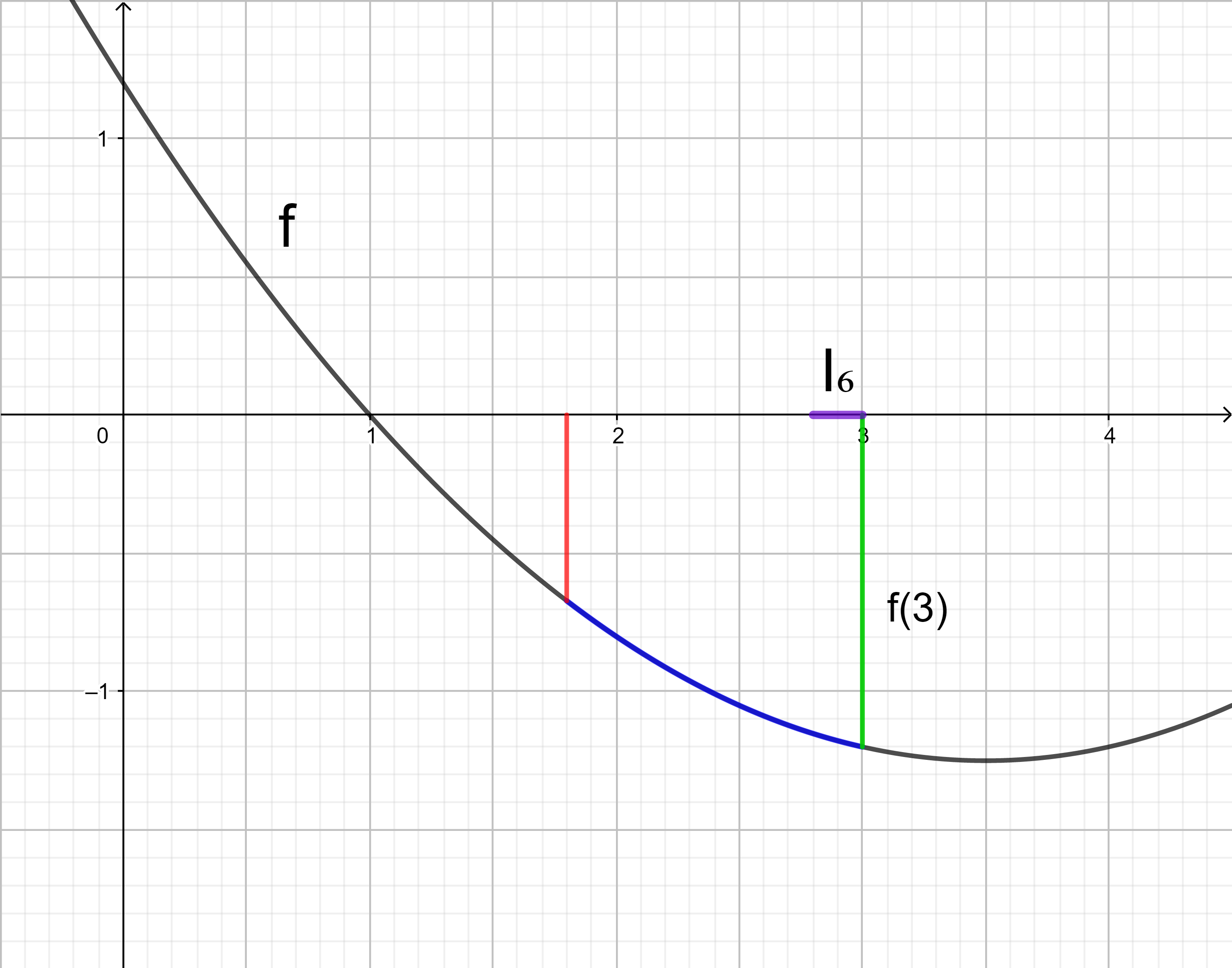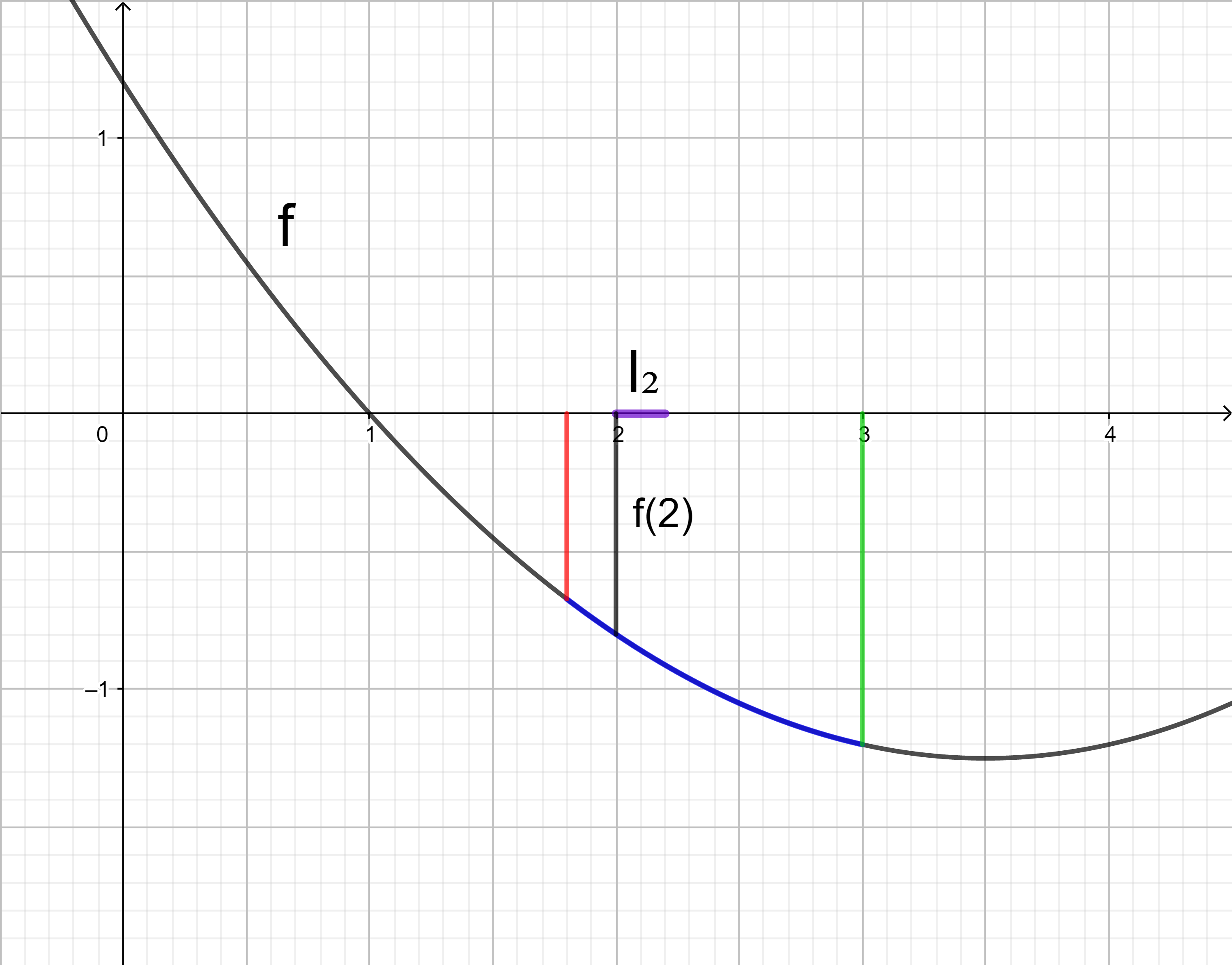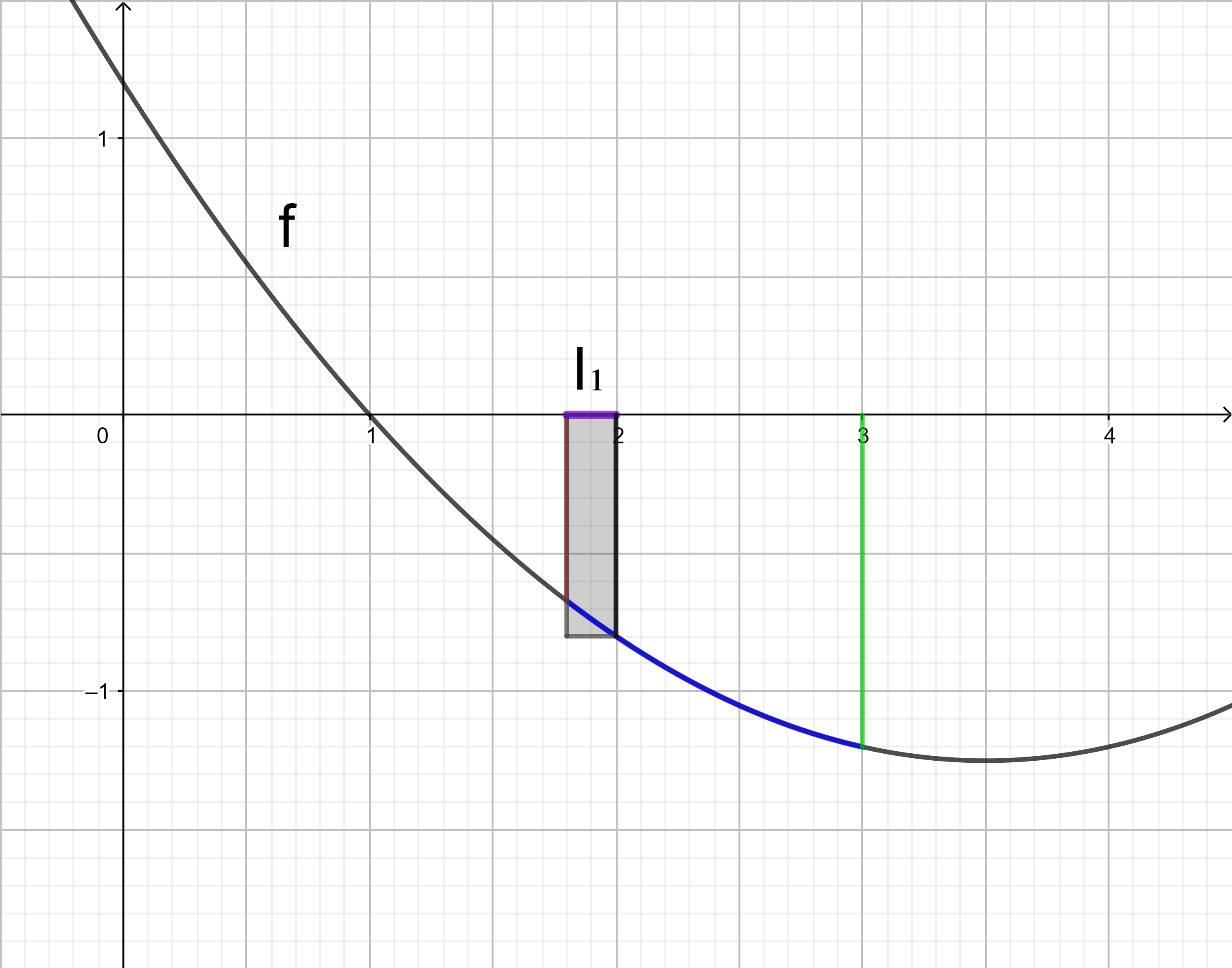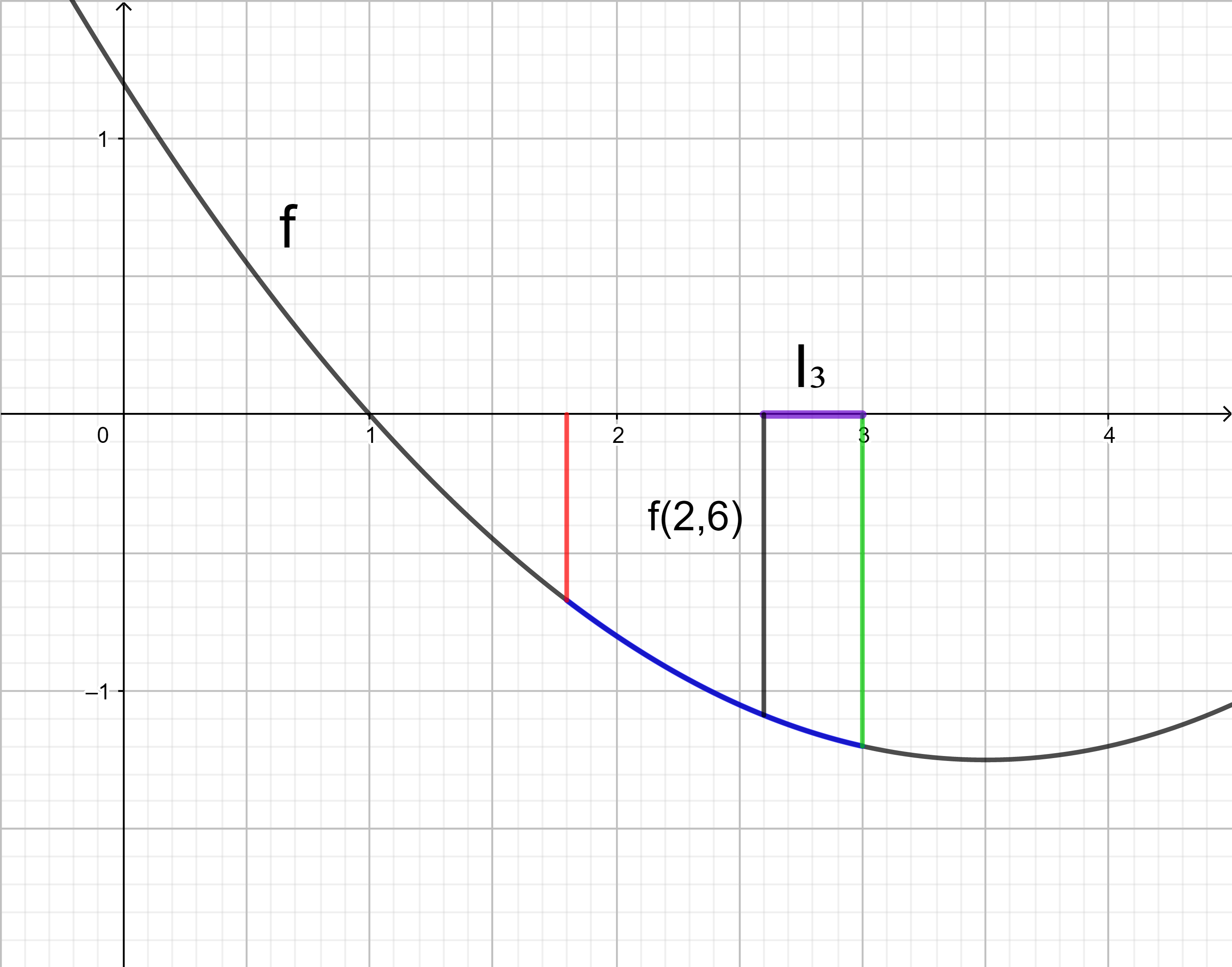 Das Rechteck im Intervall I2 hat den orientierten Flächeninhalt 0,4 ⋅ f(2,6).
