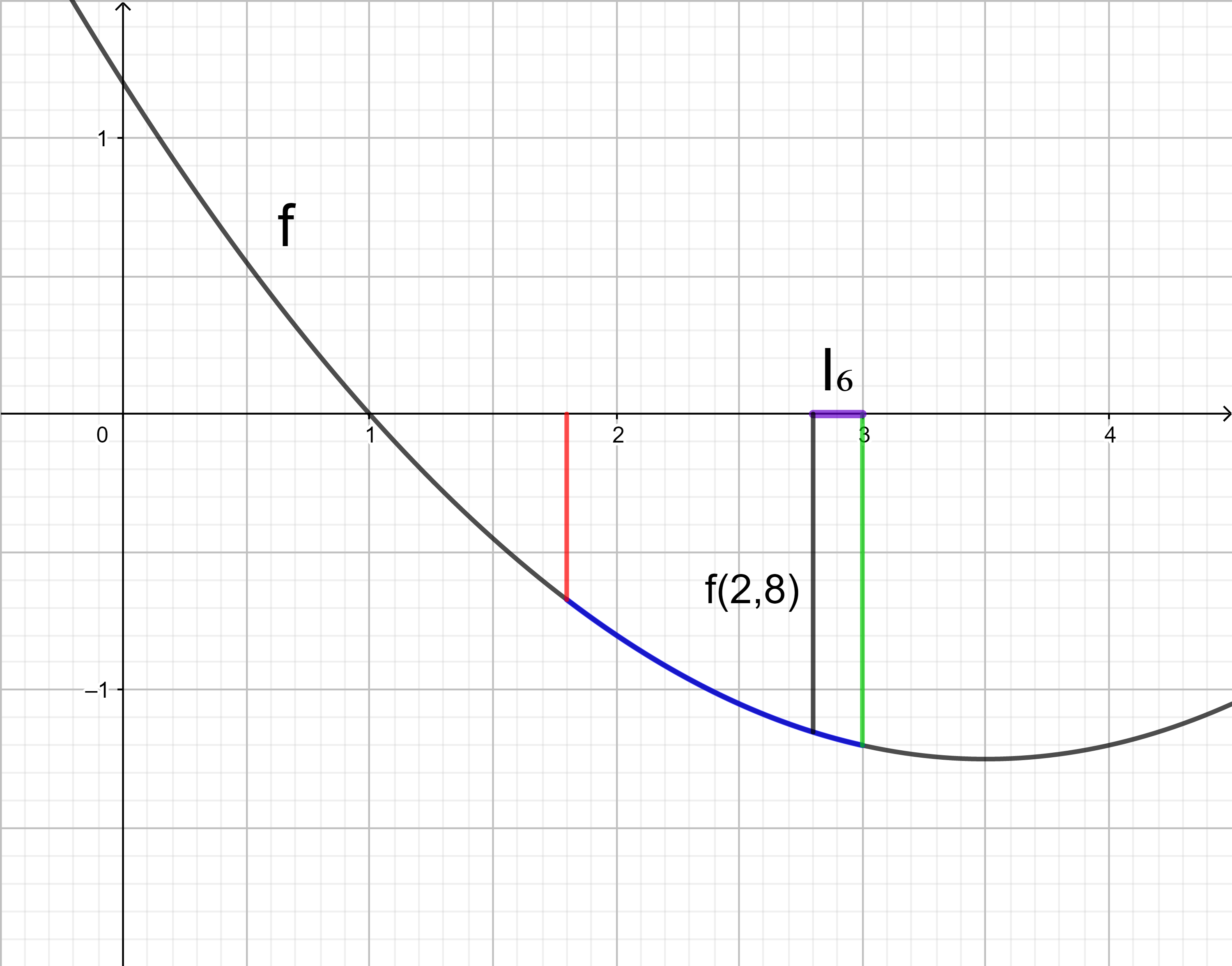 = 0,2 ⋅ f(1,8) + 0,2 ⋅ f(2) + 0,2 ⋅ f(2,2) + 0,2 ⋅ f(2,4) + 0,2 ⋅ f(2,6) + 0,2 ⋅ f(2,8)