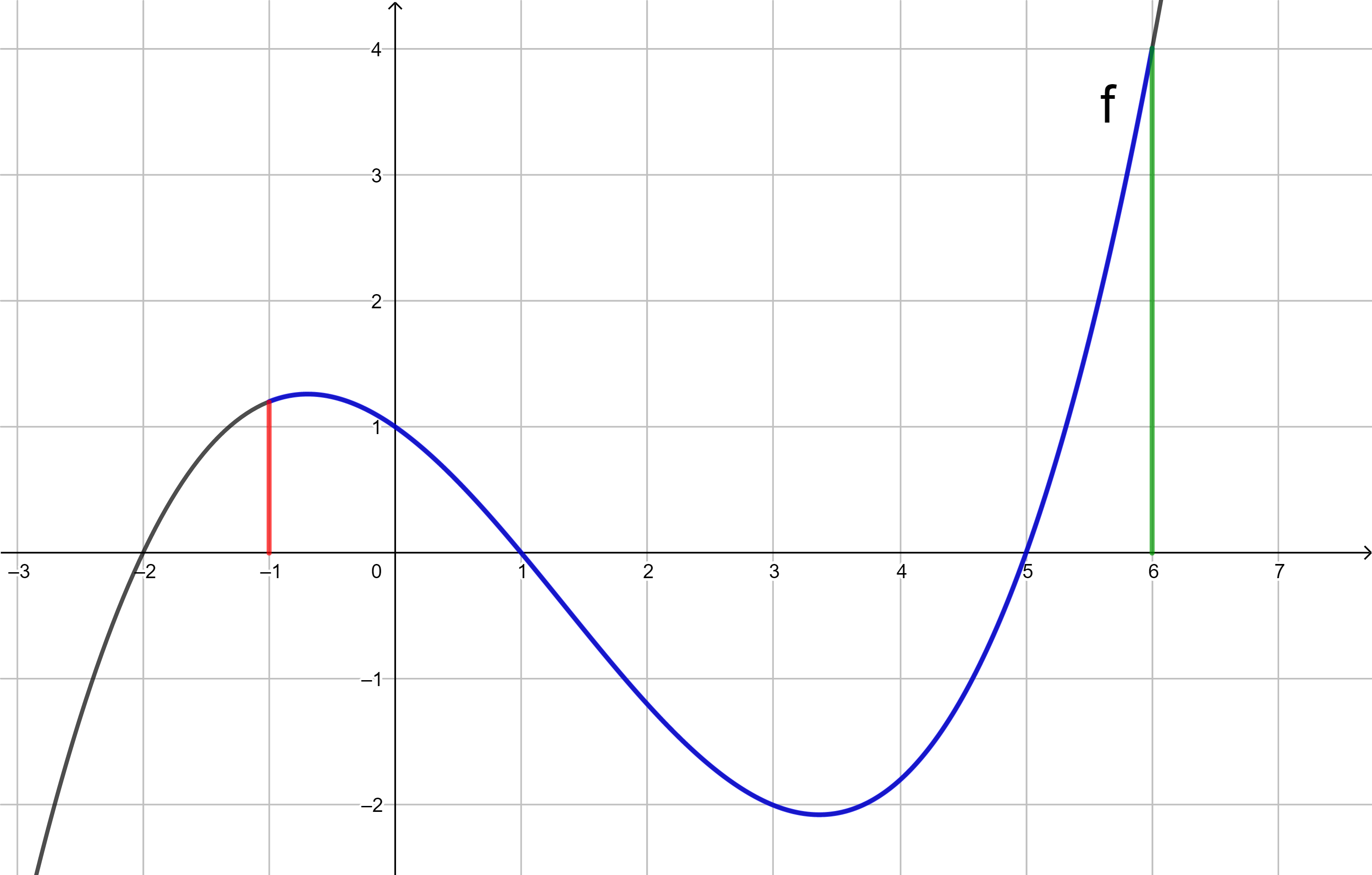 Dazu wird nur der Abschnitt auf dem Graphen der Funktion f betrachtet, der zwischen den Integrationsgrenzen, also im Intervall [-1 ; 6] liegt.